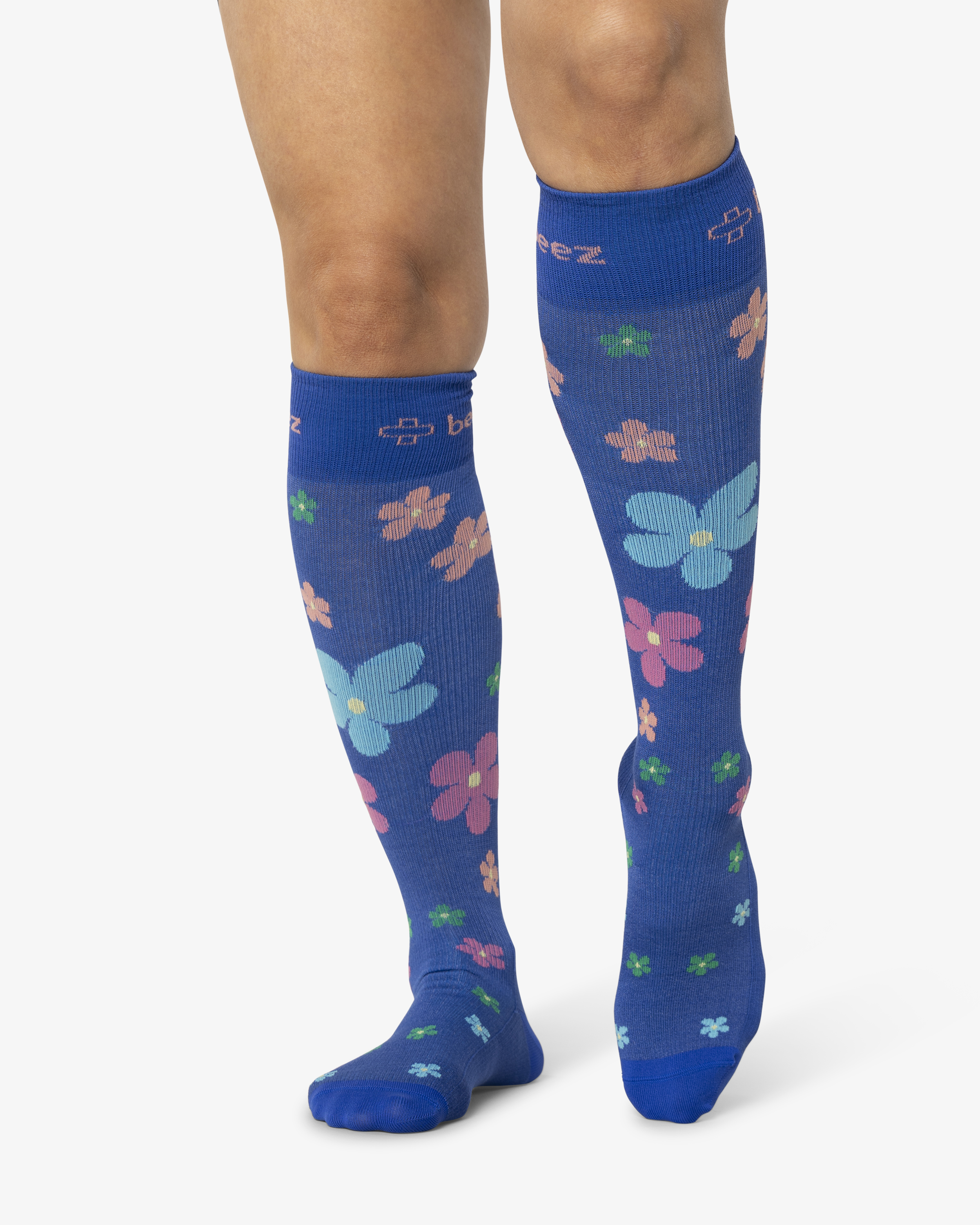 Beez Støttestrømpe Clare Småblomstret Lyserød