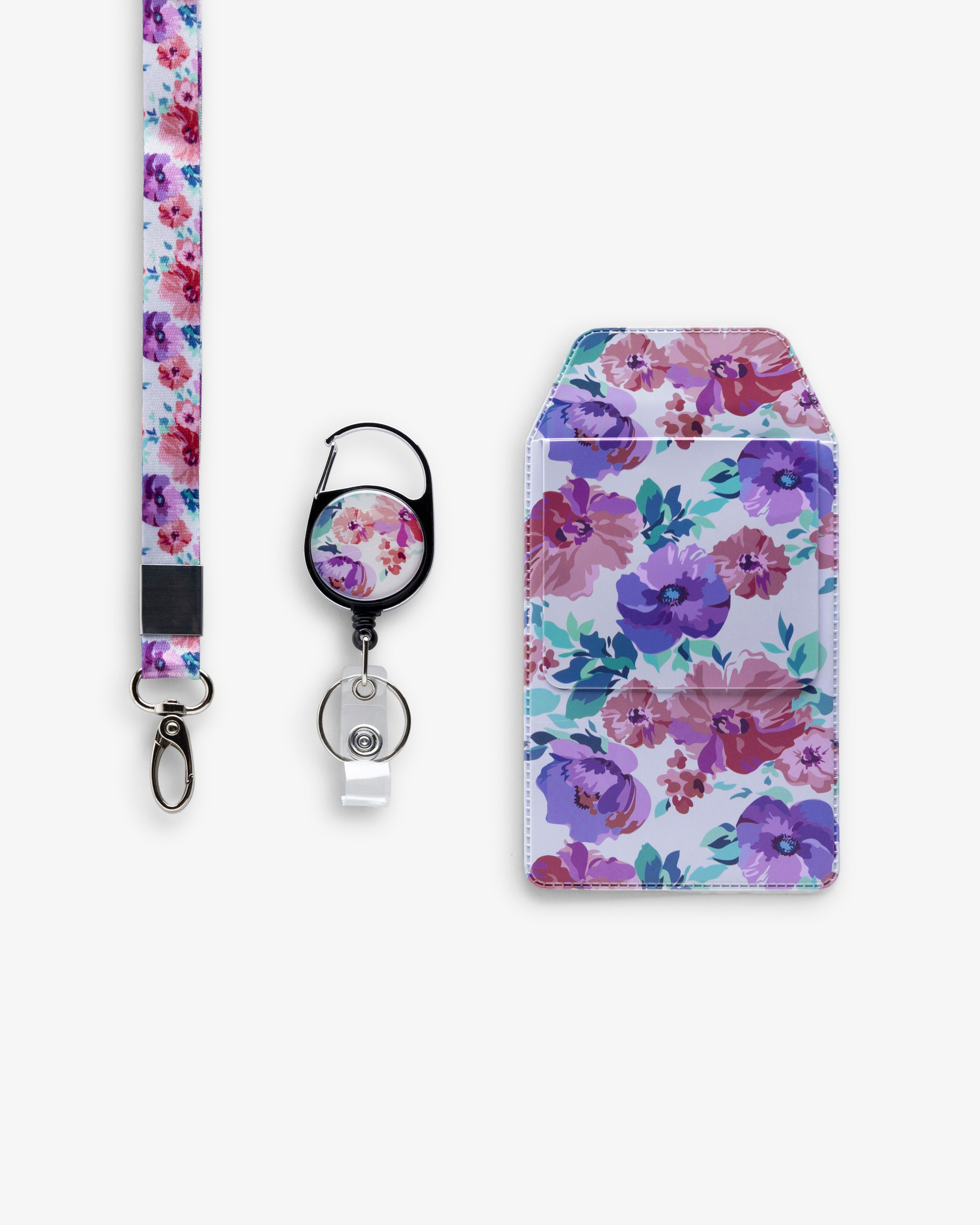 Skab et harmonisk arbejdsmiljø med vores Arbejdstilbehørssæt i lilla blomstermønster. Lilla er en farve, der ofte forbindes med ro og kreativitet, hvilket passer perfekt i plejen. Dette sæt indeholder alt, hvad du behøver for at holde dine nøgler, kort og kuglepenne i perfekt orden. De matchende dele skaber en gennemtænkt og stilren helhed, der løfter din arbejdsbeklædning.