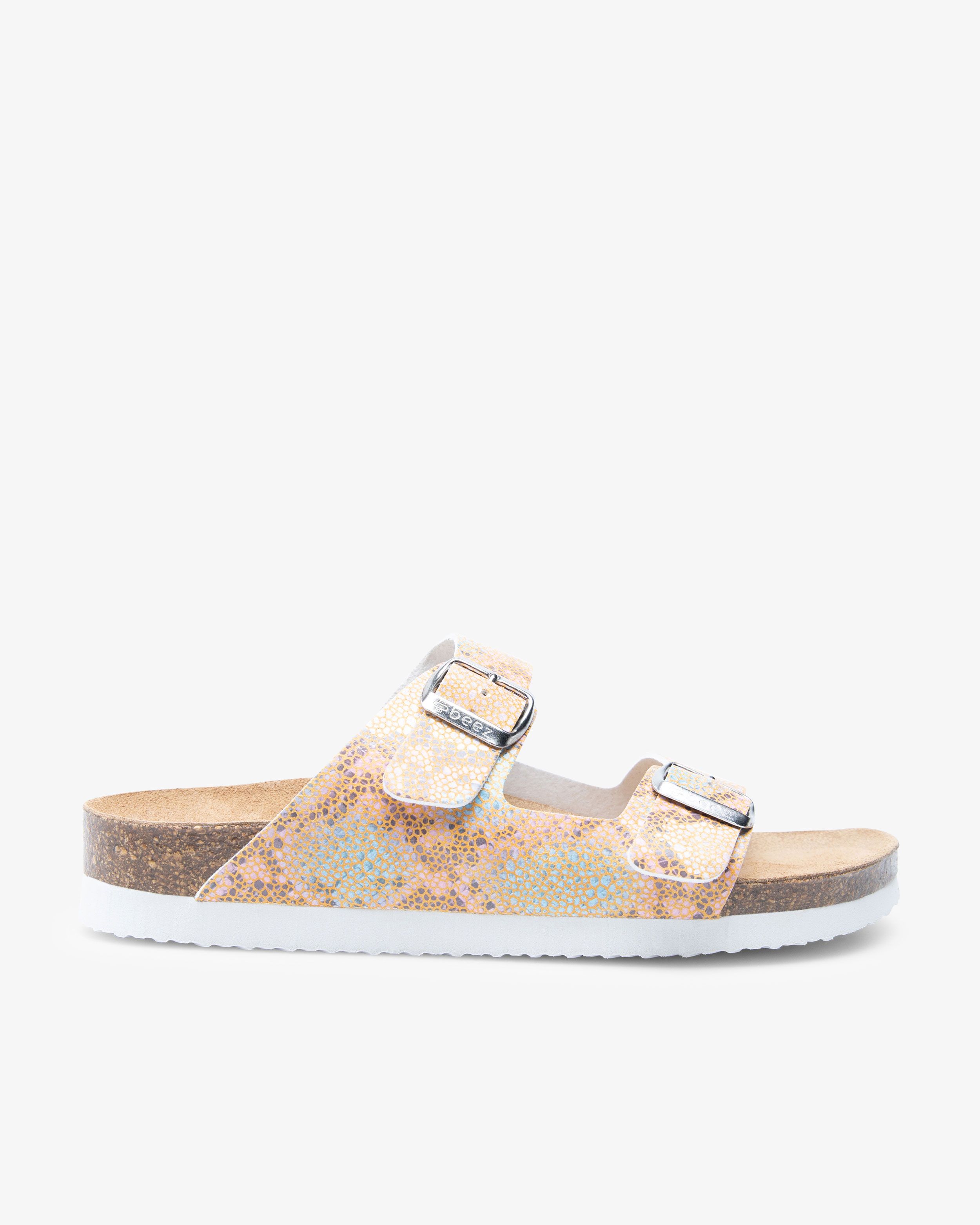 Beez Joie er en arbejdssandal med høj komfort. Sandalen har et klassisk design og fås i flere trendy farver og mønstre. Joie har en anatomisk fodseng lavet af naturlig kork og naturgummi. Tågreb og udformning til svangen giver en jævn belastning på foden og modvirker trætte og ømme fødder. Med en stabil ydersål får EVA-gummi sandalen et godt greb, og EVA-gummiets stødsikre egenskaber giver skodæmpende egenskaber, der fremmer fodens naturlige bevægelse.