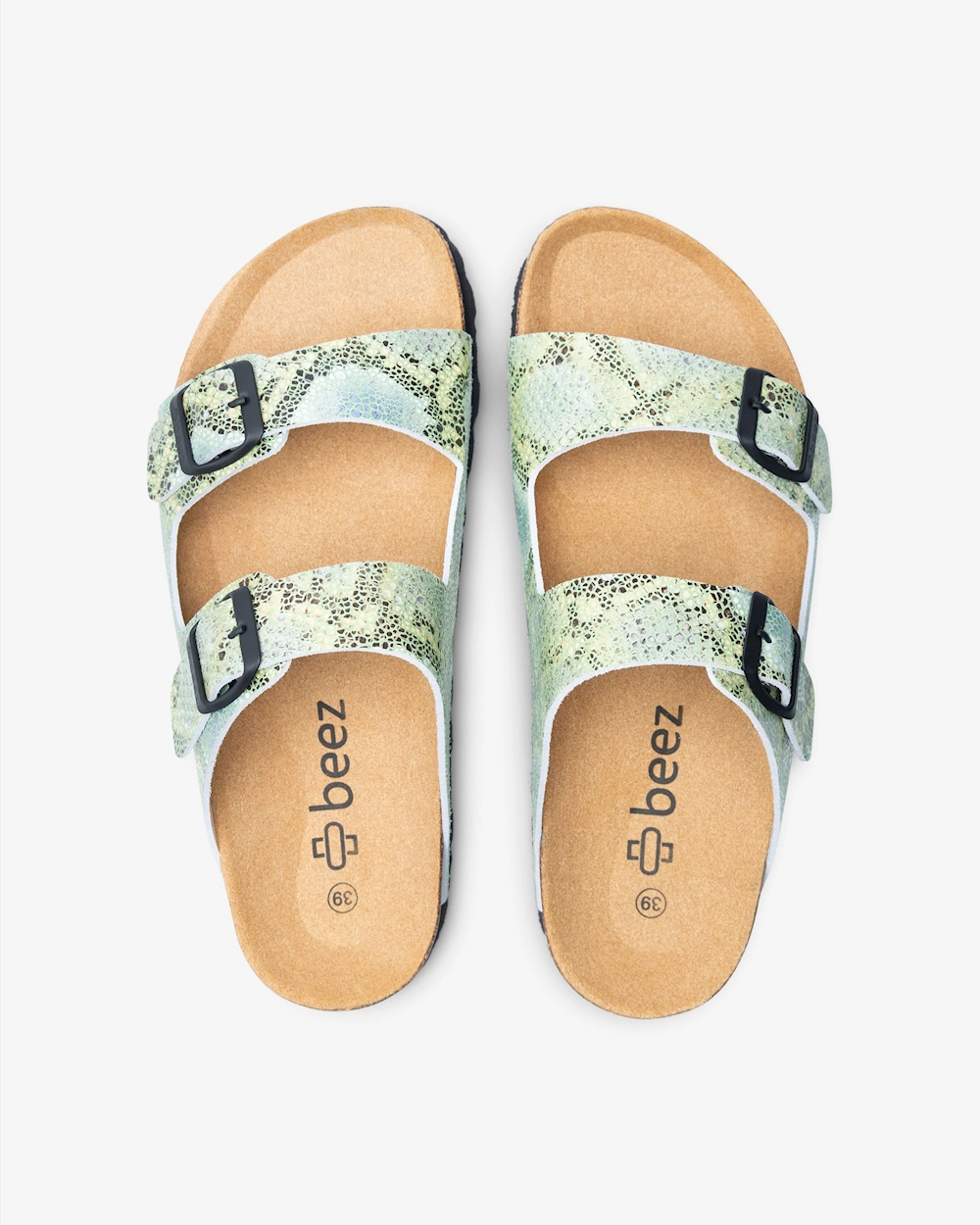 Komfortabel arbejdssandal med anatomisk udformet korksål, der giver støtte og aflastning under lange arbejdsdage. Sandalen er vegansk, og PU-overdelen er nem at tørre af og holde ren. EVA-gummi-ydersålen har en behagelig stødafdæmpende effekt ved hvert skridt - perfekt til sundhedspersonale, der kræver komfort og kvalitet.