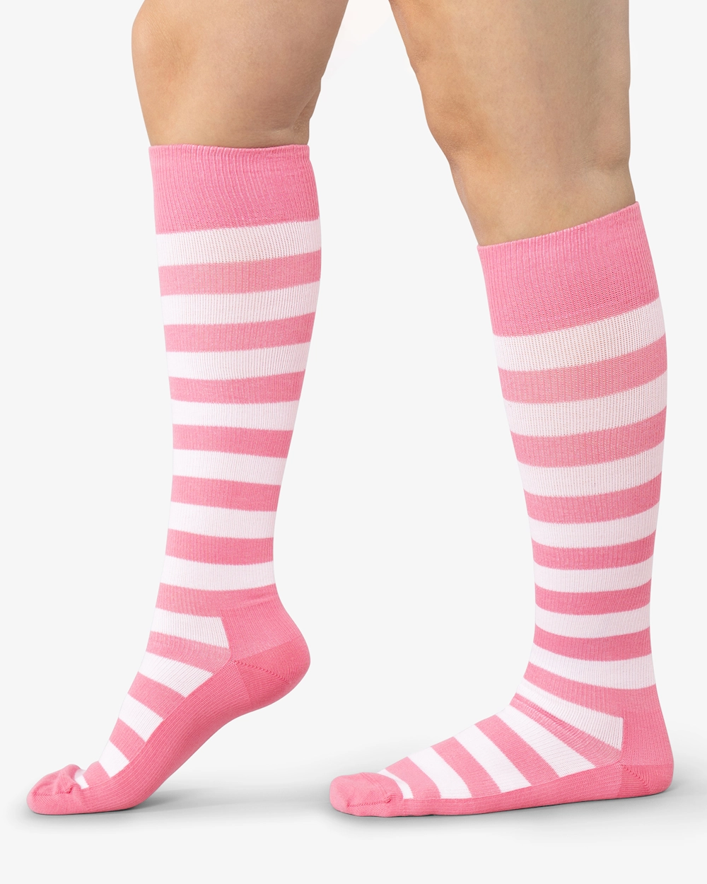BEEZ, Støttestrømpe Stribet Lyserød/Hvid