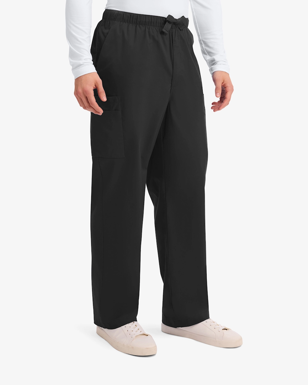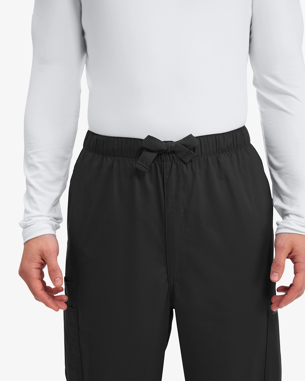 Arbejdsbukser til mænd med traditionel pasform, normal taljehøjde og elastik i taljen for optimal komfort. Den justerbare snøre og den funktionelle lynlås giver en tilpasset pasform. Udstyret med to skrå forlommer, fire rummelige cargo-lommer og en baglomme med knap for ekstra sikkerhed. Fremstillet i 2-vejs stretch for øget bevægelsesfrihed. Indvendig benlængde: 79 cm.