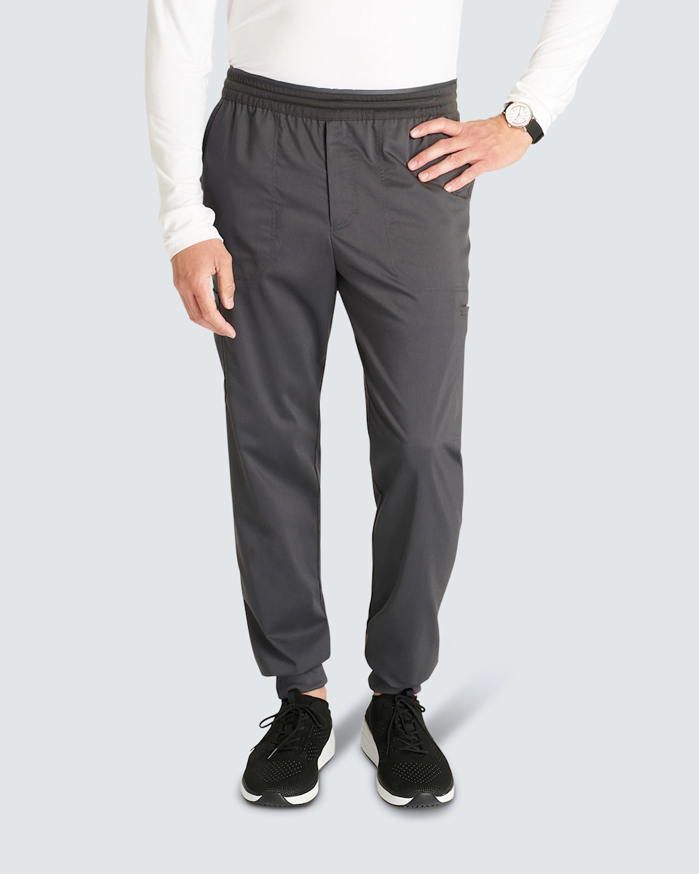 Joggingbukserne med manchetter til mænd kombinerer komfort og funktion, perfekt til lange arbejdsdage. Med en moderne pasform og midterhøj talje har de en sporty stil med elastik bagpå og snøre for en fleksibel pasform.
