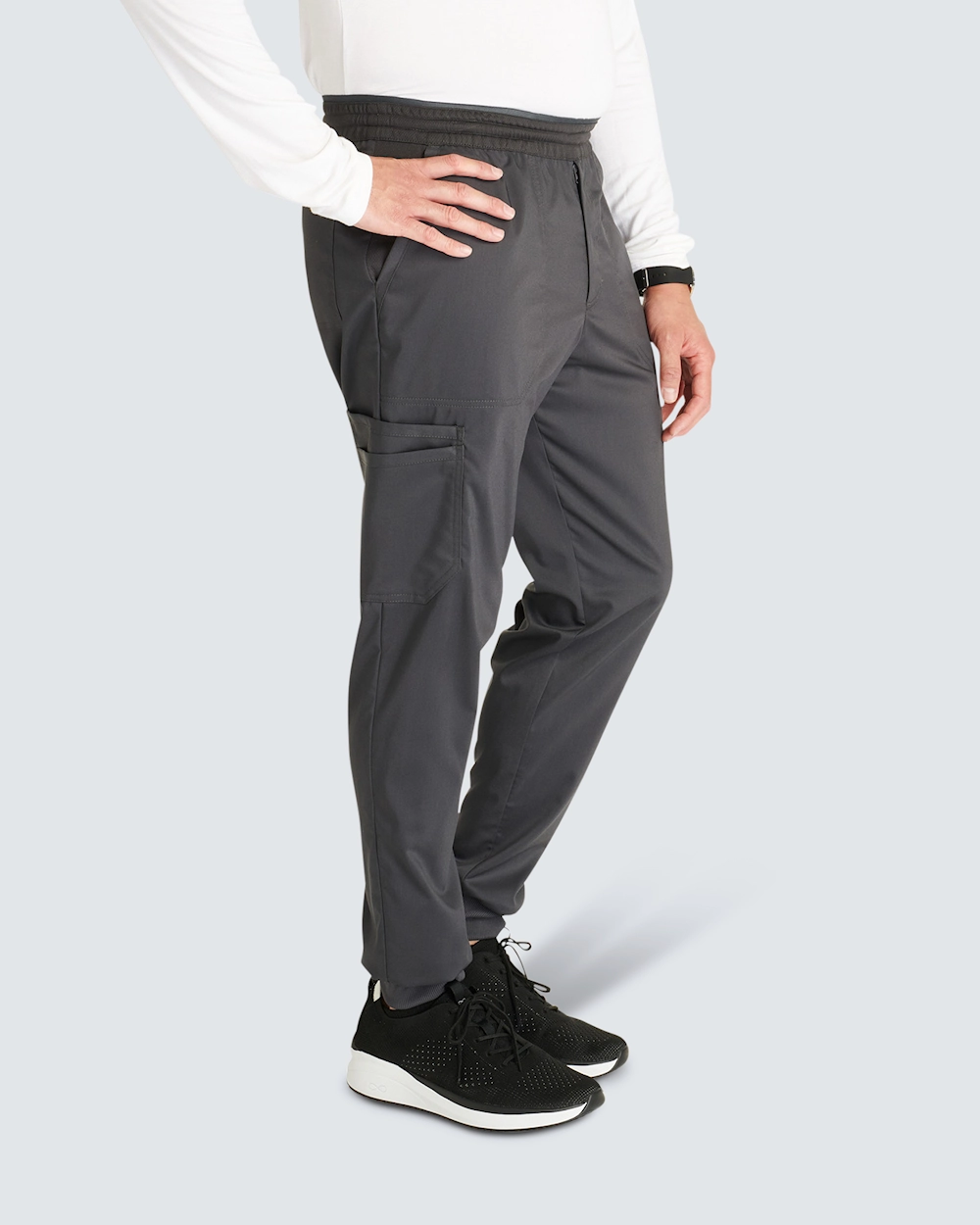 Joggingbukserne med manchetter til mænd kombinerer komfort og funktion, perfekt til lange arbejdsdage. Med en moderne pasform og midterhøj talje har de en sporty stil med elastik bagpå og snøre for en fleksibel pasform.