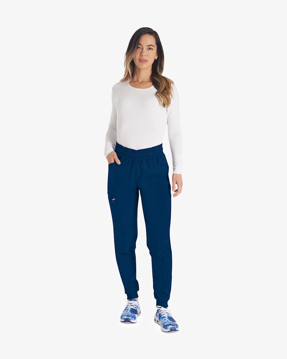 Joggingbukser med moderne pasform og midthøjde kombinerer stil og funktion til sundhedspersonale. Elastisk snøre i taljen og ribbede paneler giver en behagelig og fleksibel fornemmelse. Fem praktiske lommer, herunder en sikkerhedslomme med lynlås og bungee-loop, gør det nemt at opbevare alle dine vigtigste ting. Tilspidsede ben og 2-vejs stretch øger bevægelsesfriheden på lange arbejdsdage.