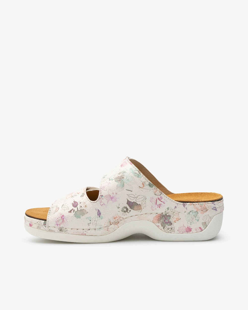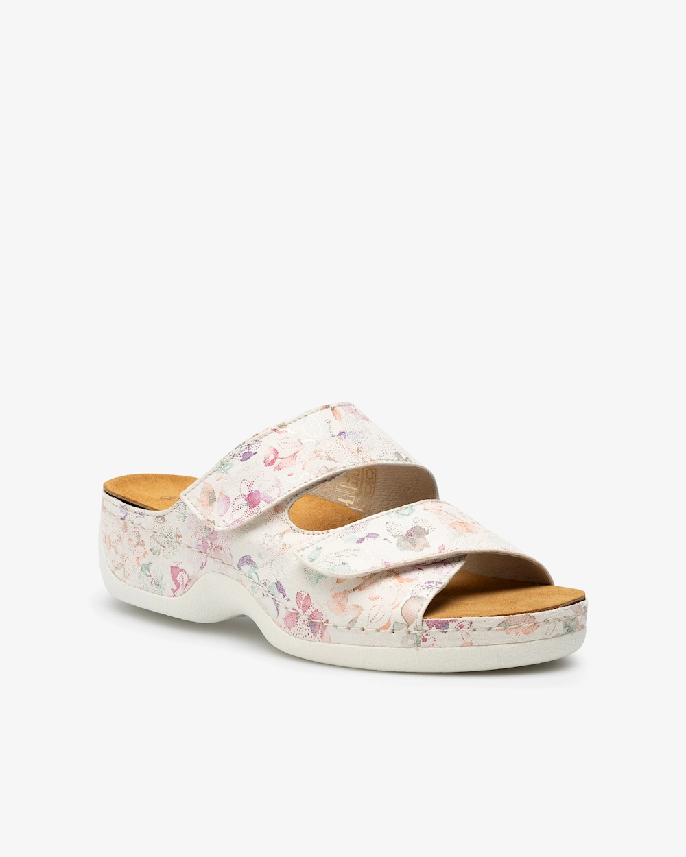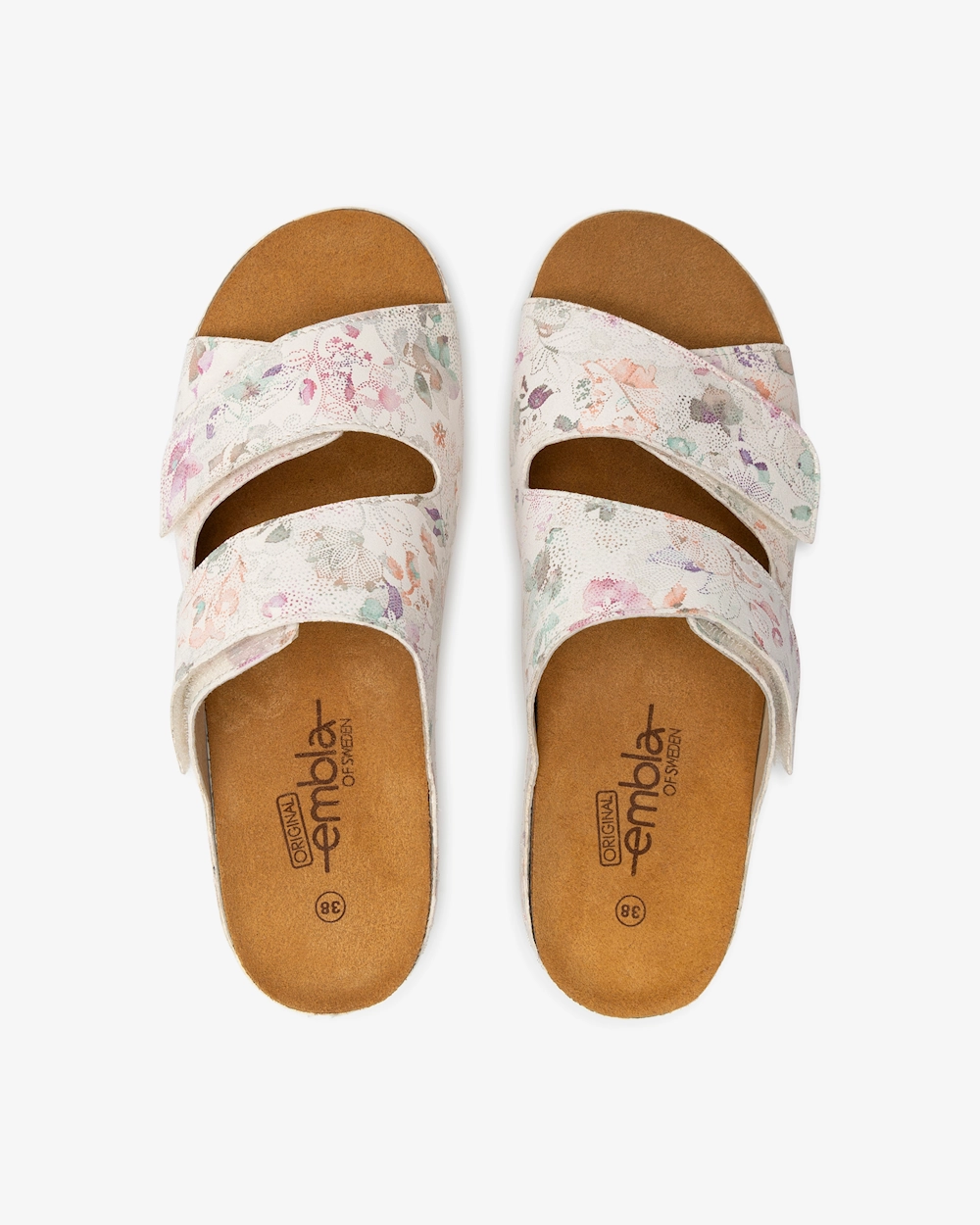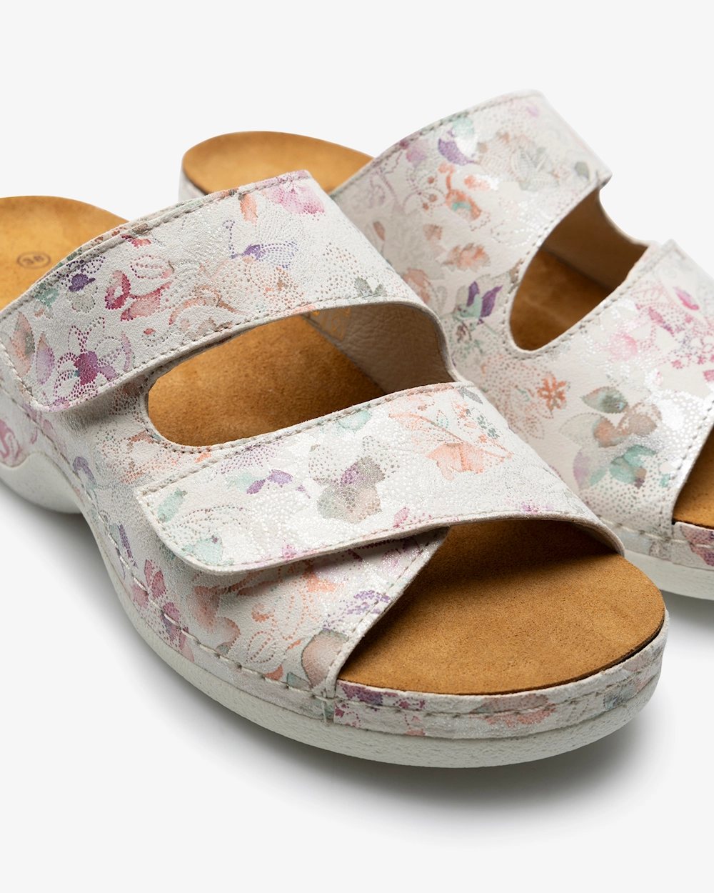Den klassiske damesandal med ergonomisk fodseng byder på både stil og funktionalitet. Med to justerbare remme kan du nemt tilpasse pasformen for optimal komfort. Sandalen har en ydersål af gummi, som giver et godt greb, perfekt til travle arbejdsdage. Den ergonomiske fodseng med svangstøtte og en pude til at løfte forfodsbuen sikrer, at dine fødder får den rette støtte hele dagen. Et musthave for sundhedspersonale, der ønsker at kombinere funktionalitet med personlig stil.
