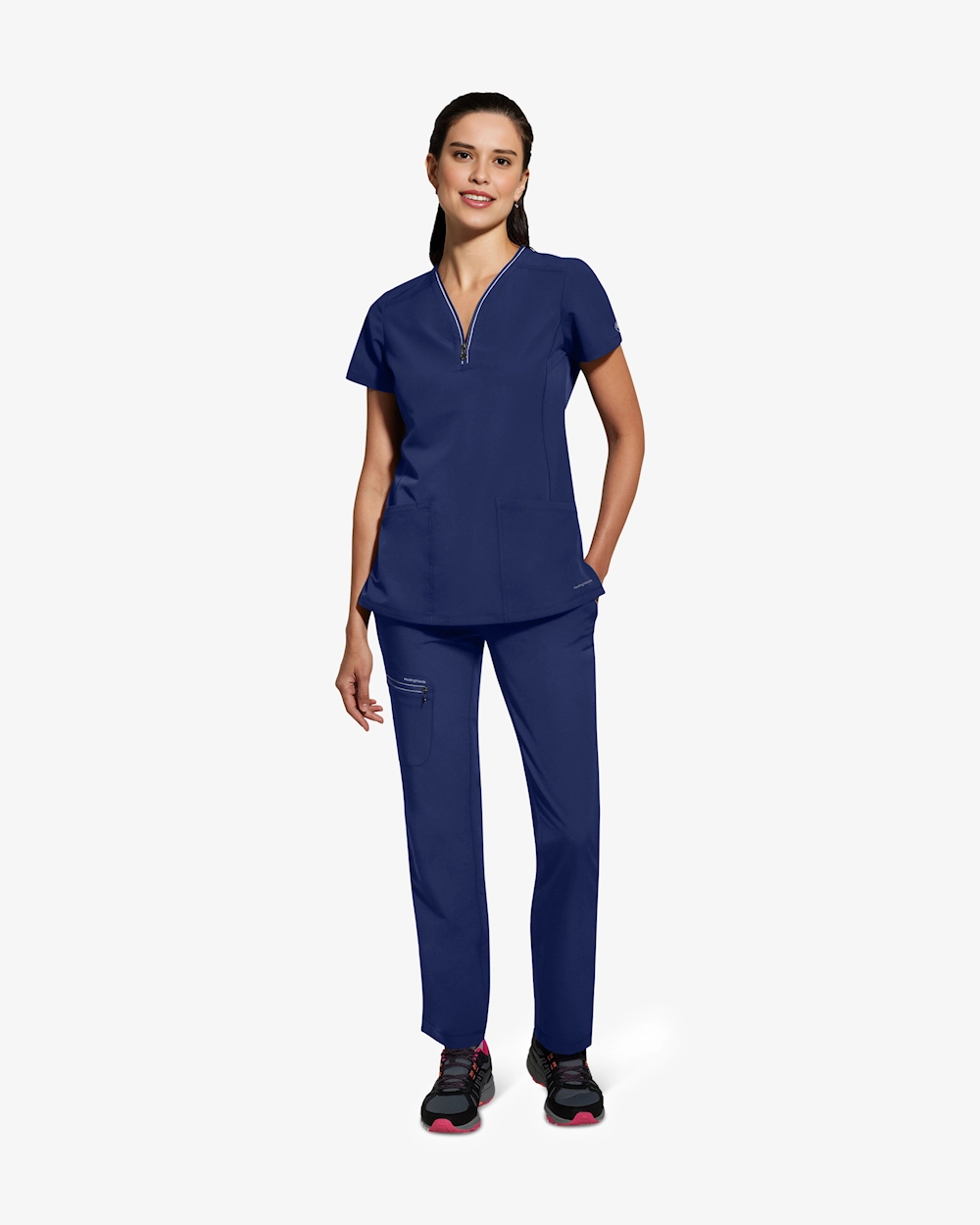 Disse unisex-arbejdsbukser har en midterhøj talje og ribkant med snøre for optimal komfort og justerbar pasform. Stretchstoffet giver bevægelsesfrihed under lange vagter, mens flere praktiske lommer hjælper med at organisere arbejdsredskaber. Stilfuldt og moderne design er kombineret med funktionalitet for at opfylde sundhedsindustriens krav til både stil og ydeevne.