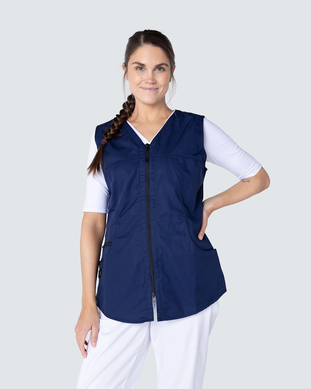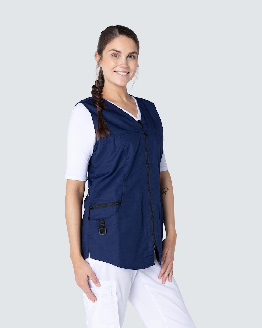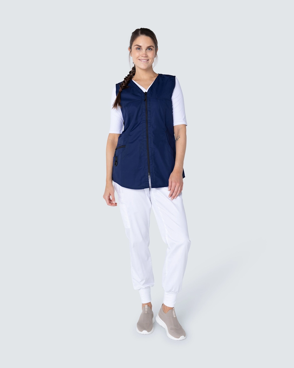 Lucy fra Hejco er en vest med mange funktioner. Taljen justeres let ved hjælp af snøre i siderne.
