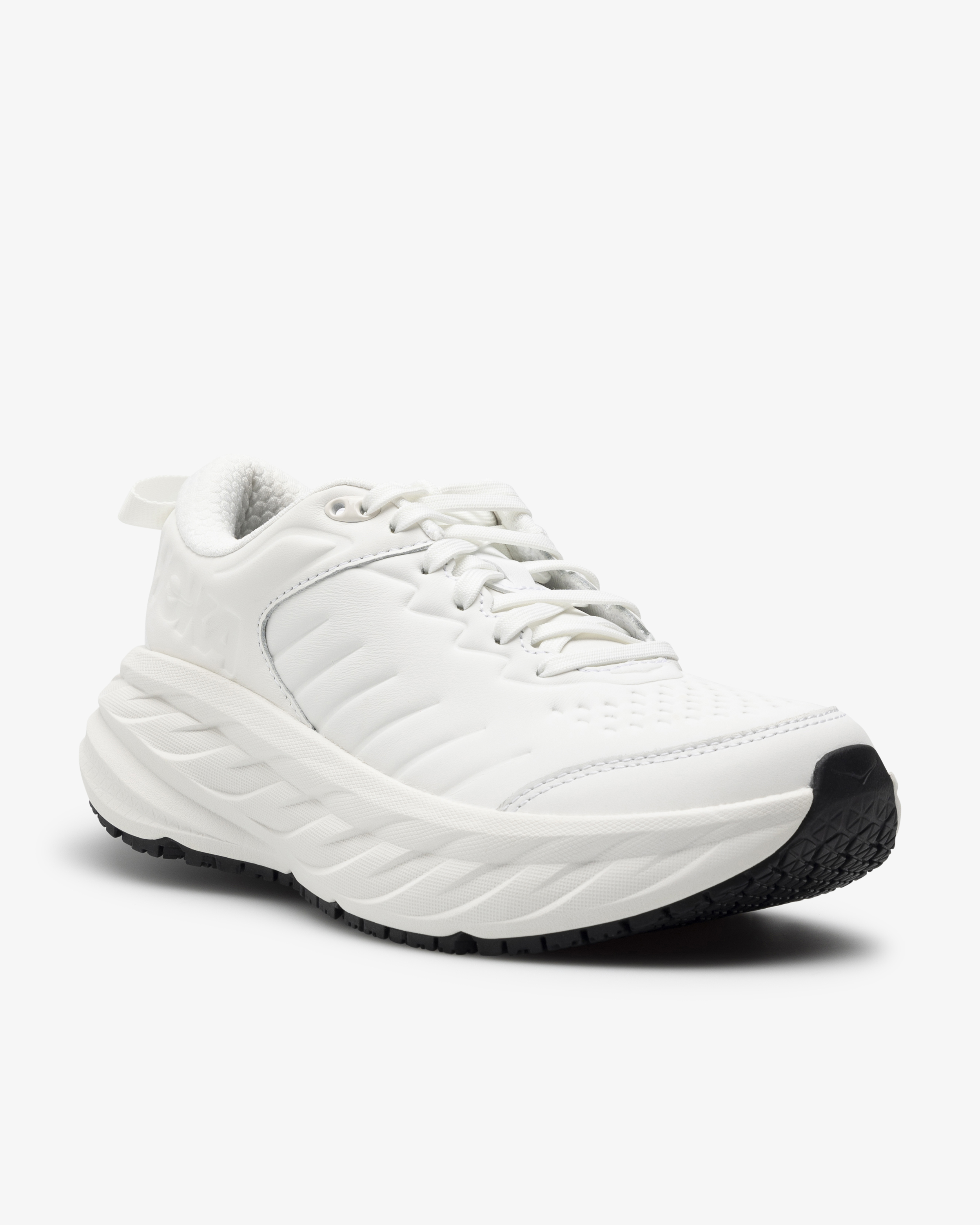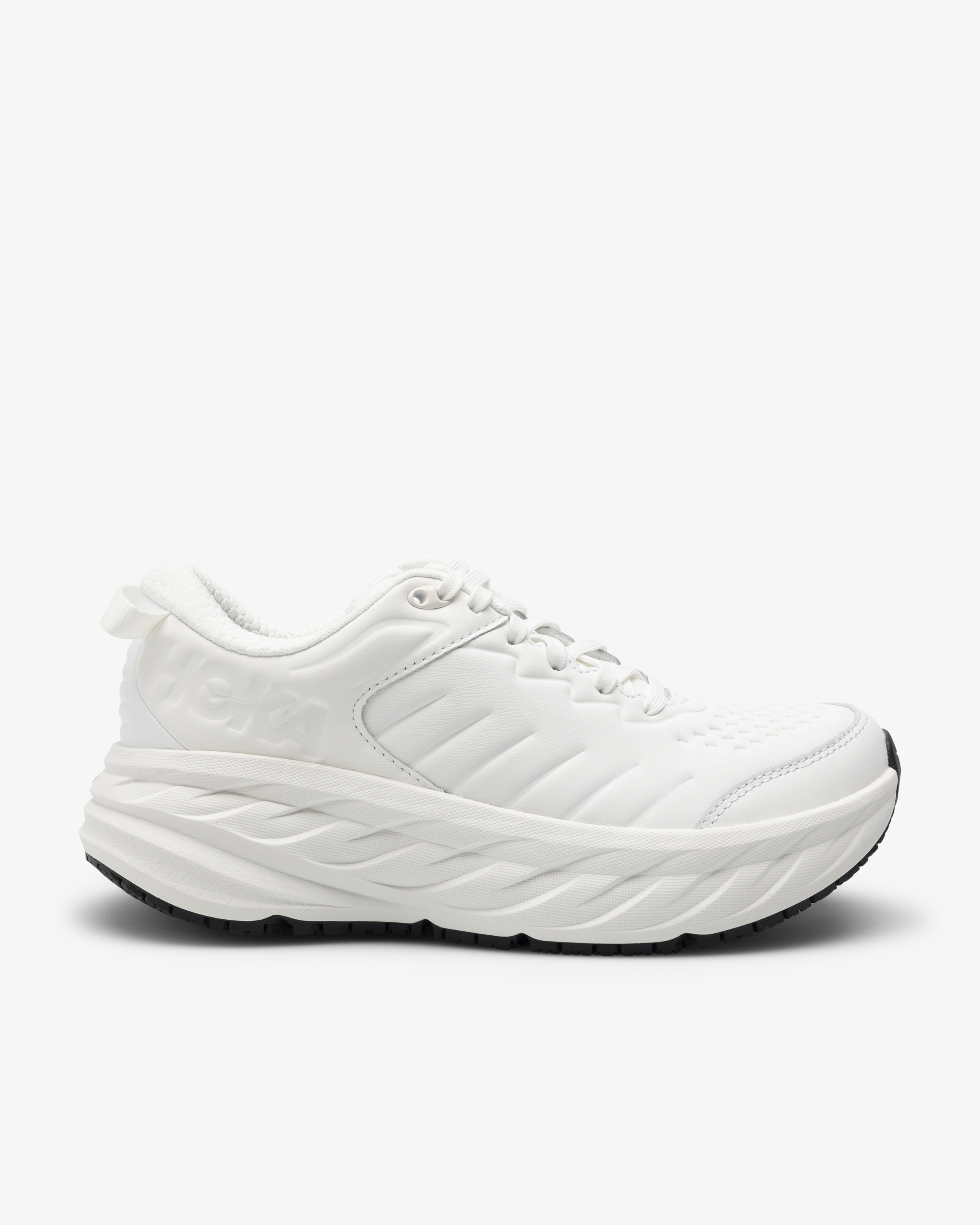 Hoka Bondi SR giver optimal komfort og sikkerhed for sundhedspersonale på intense arbejdsdage. Den stilfulde sko er lavet af vandafvisende læder, der sikrer beskyttelse og holdbarhed. Indsatsen af memory foam former sig perfekt efter fodens form, mens EVA-mellemsålen giver overlegen stødabsorbering. Den skridsikre gummisål sikrer et fast greb på forskellige overflader, hvilket gør denne sko ideel til både sundheds- og servicefag. Invester i Hoka Bondi SR for at få en kombination af stil, komfort og funktionalitet, der holder hele arbejdsdagen.