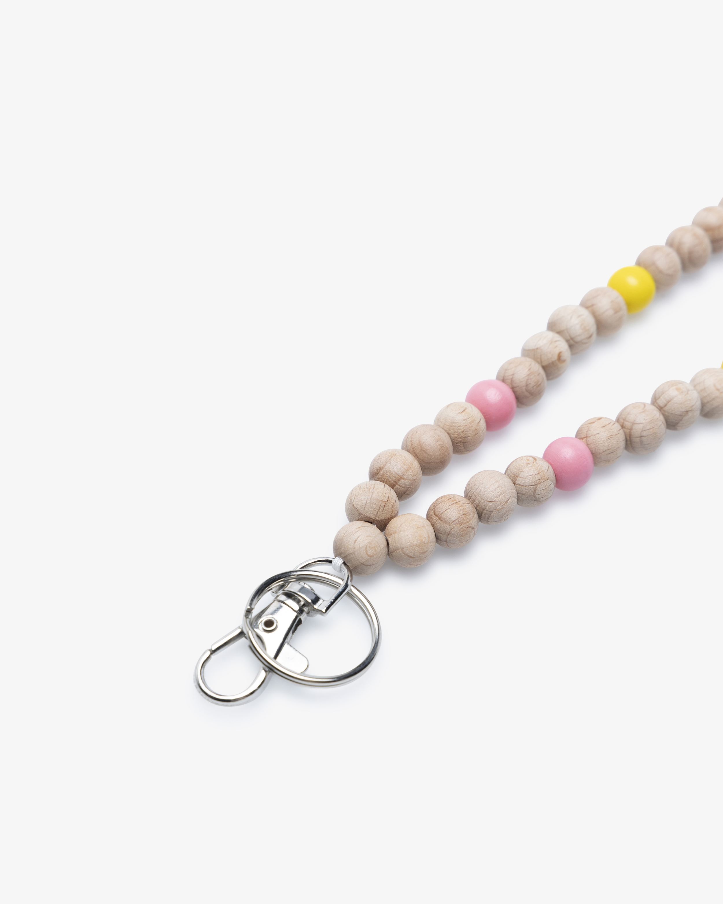 Den trendy træperlesnor kombinerer stil og funktionalitet for sundhedspersonale, der ønsker at udtrykke deres personlige stil på arbejdet. Nøglesnoren er udstyret med et spænde bagpå og en praktisk karabinhage, som gør det nemt at bære både nøgler og ID-kort på en sikker og praktisk måde. Den er robust og stilfuld og tilføjer et muntert strejf til din arbejdsuniform.