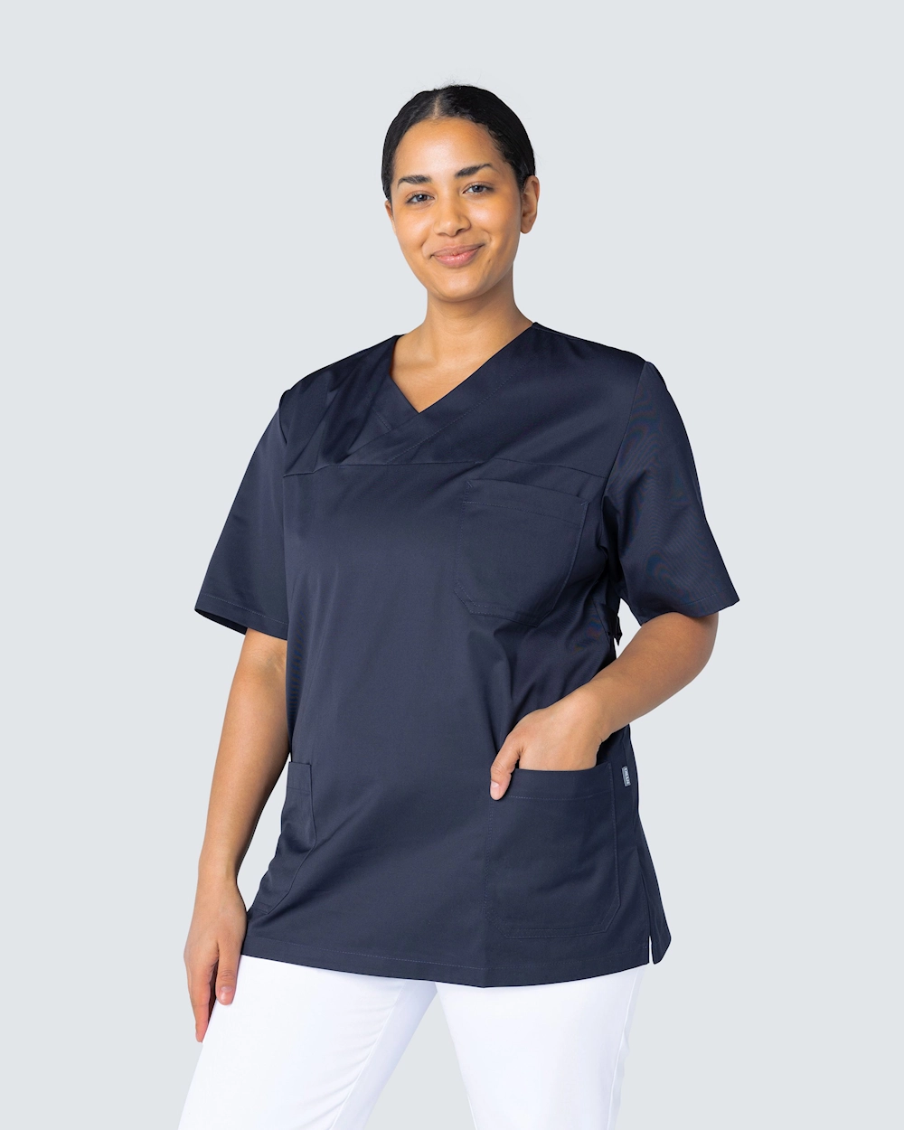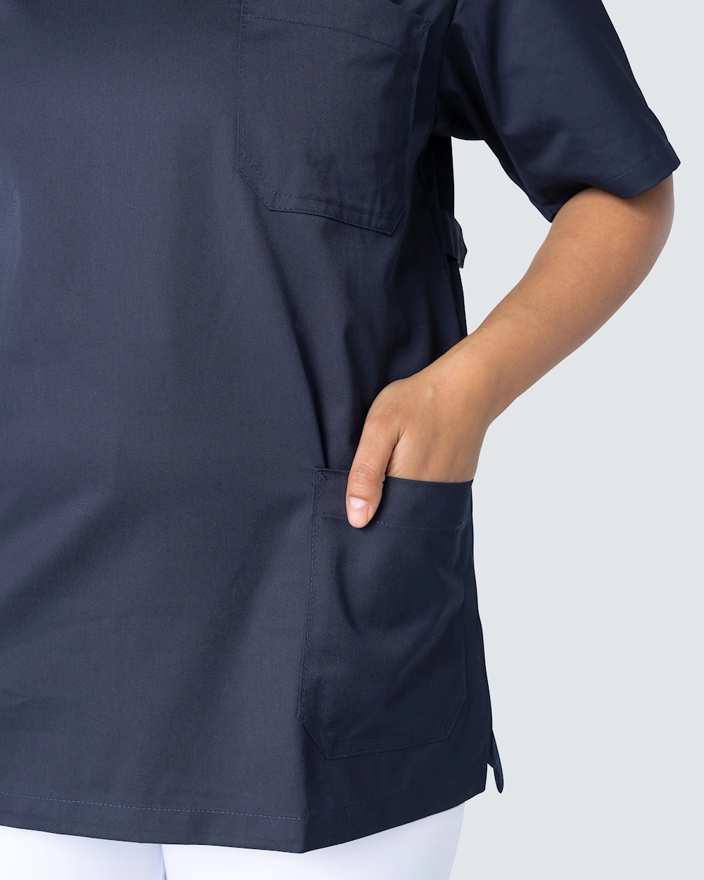 Praktisk arbejdsbusseronne i lækkert materiale og flere praktiske detaljer. Busseronnen er lavet i en lige unisex model og har også en justerbar talje, hvor du kan justere busseronnen med et elastikbånd og knapper for en mere figursyet pasform. Busseronnen har slids i siderne for optimal komfort og bevægelsesfrihed samt rummelige lommer med både ekstra mobillomme og nøglebånd.