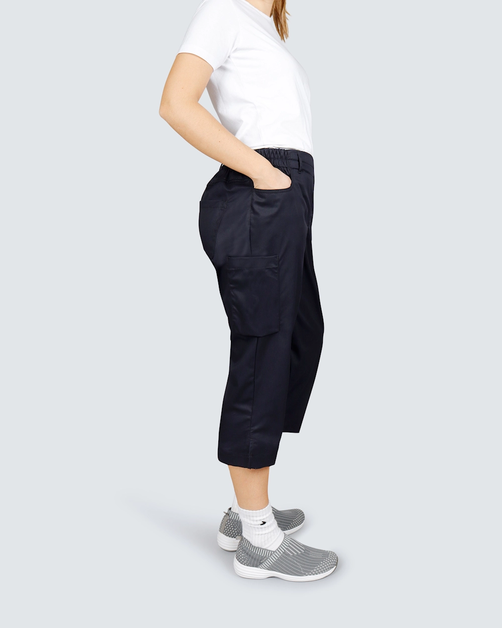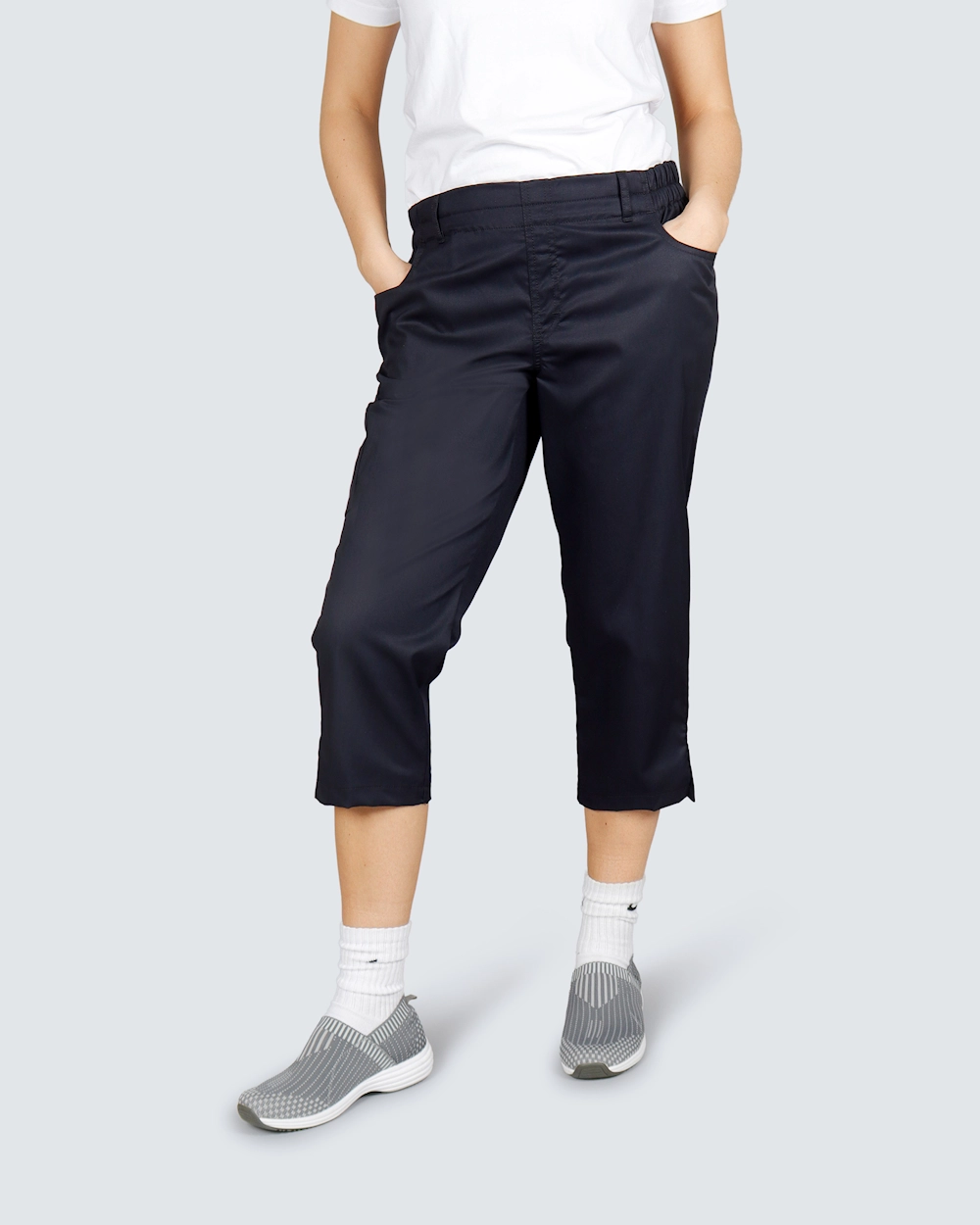 Capri arbejdsjeans med høj komfort og funktionalitet. Det førsteklasses stretchstof giver optimal bevægelsesfrihed og tilpasser sig kroppens form i løbet af dagen. Stoffet er specielt designet til at modstå industriel vask og samtidig bevare stretch og holdbarhed. Moderne, rent look med en behagelig elastik i taljen og en stilfuld silhuet, der passer til både sundheds- og servicemiljøer. Passer til alle kropstyper og giver en afslappet, moderigtig stil. Fås i størrelserne XS-4XL.