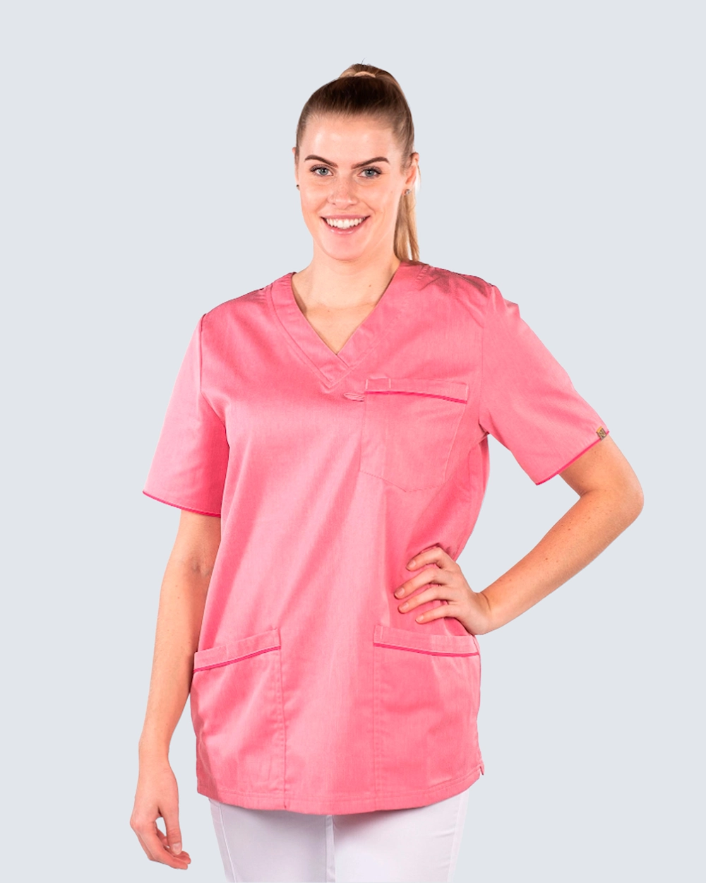 Tøjet i Nytellos Harmony kollektion har en melange struktur med en ensfarvet kant. Mange funktionelle detaljer og fokus på pasform kendetegner tøjet, der er lavet af 50% bomuld og 50% polyester. Alle tøjet vaskes ved 60C.