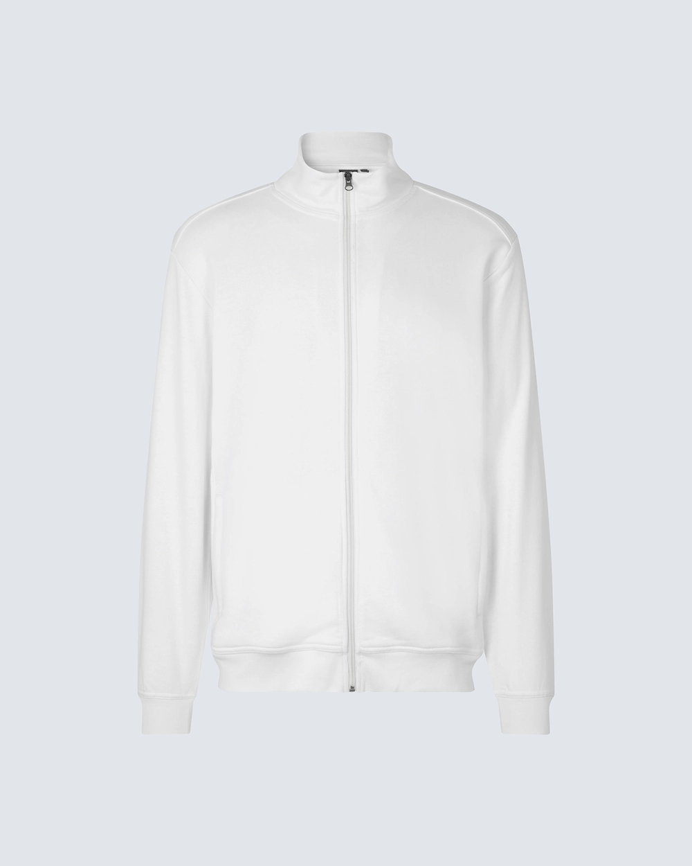 Oplev komfort og holdbarhed med vores trøje i sweatmateriale. YKK-lynlås hele vejen langs fronten samt sidelommer til sikker opbevaring. Fremstillet af ansvarligt produceret bomuld og genanvendt polyester. Forkrympet både før og efter farvning, hvilket sikrer stabilitet og lang levetid. Perfekt til dem, der sætter pris på kvalitet og holdbarhed.