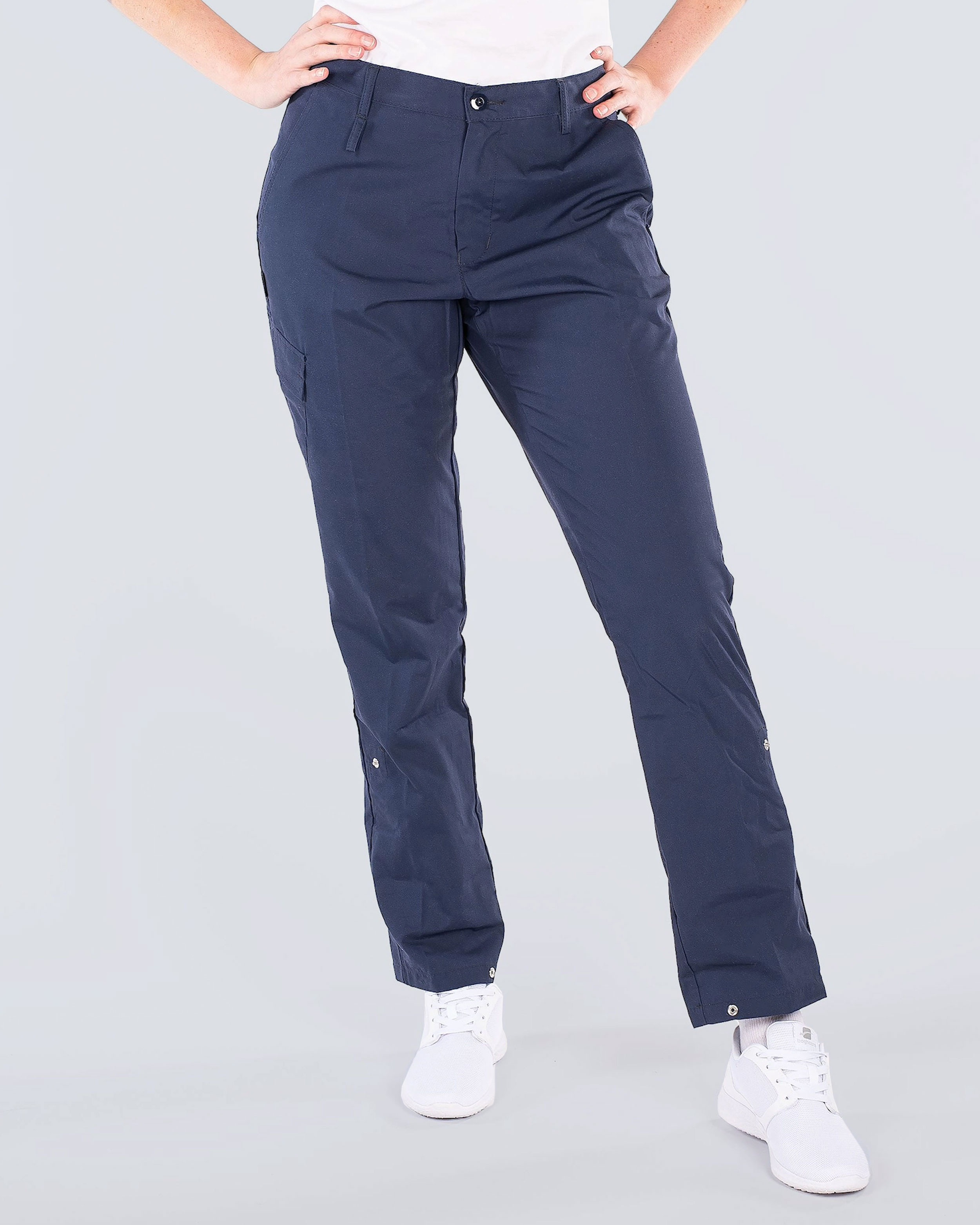 Disse bukser fra Segers har trykknapper og snøre til justering af benlængde.