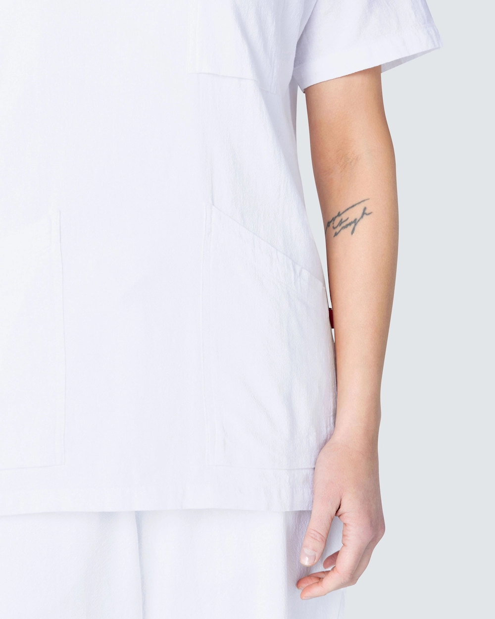 Tøjet i denne kollektion er lavet af 100% krøllet bomuld, hvilket giver en behagelig følelse. Strukturen hjælper med at mindske behovet for pleje, såsom strygning. Nogle beklædningsgenstande i kollektionen er certificeret i henhold til GOTS, hvilket betyder, at bomulden i disse er 100% økologisk. Tøjet kan vaskes ved 60°C og 85°C, se vejledning på tøjet for den korrekte vaskeanvisning.