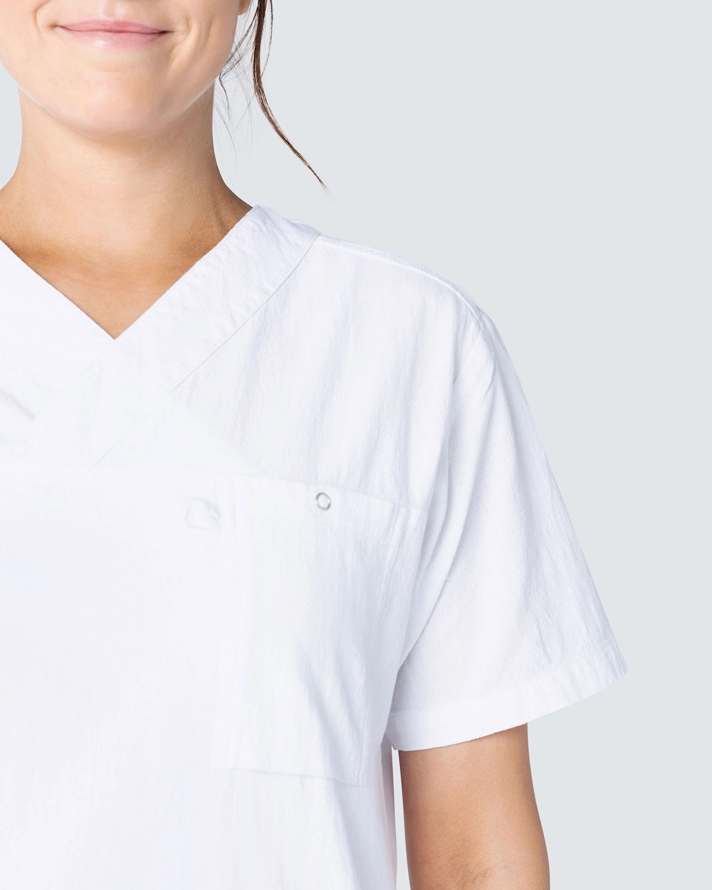 Komfortabel busseronne i krøllet bomuld med en pasform, der fungerer til både kvinder og mænd. South Wests busseronne i krøllet bomuld har en meget blød komfort, høj åndbarhed og et luftigt design, der giver maksimal bevægelsesfrihed. Busseronnen har en klassisk V-udskæring og en lige pasform med generøse mål, der passer til de fleste kropstyper. Med to rummelige sidelommer, hvoraf den ene er udstyret med en nøgleholder og telefonlomme, og en brystlomme med en ringtrykknap, her har du masser af plads til en kuglepen, saks, ID og alle andre tilbehør, der er nødvendige til din arbejdsdag.