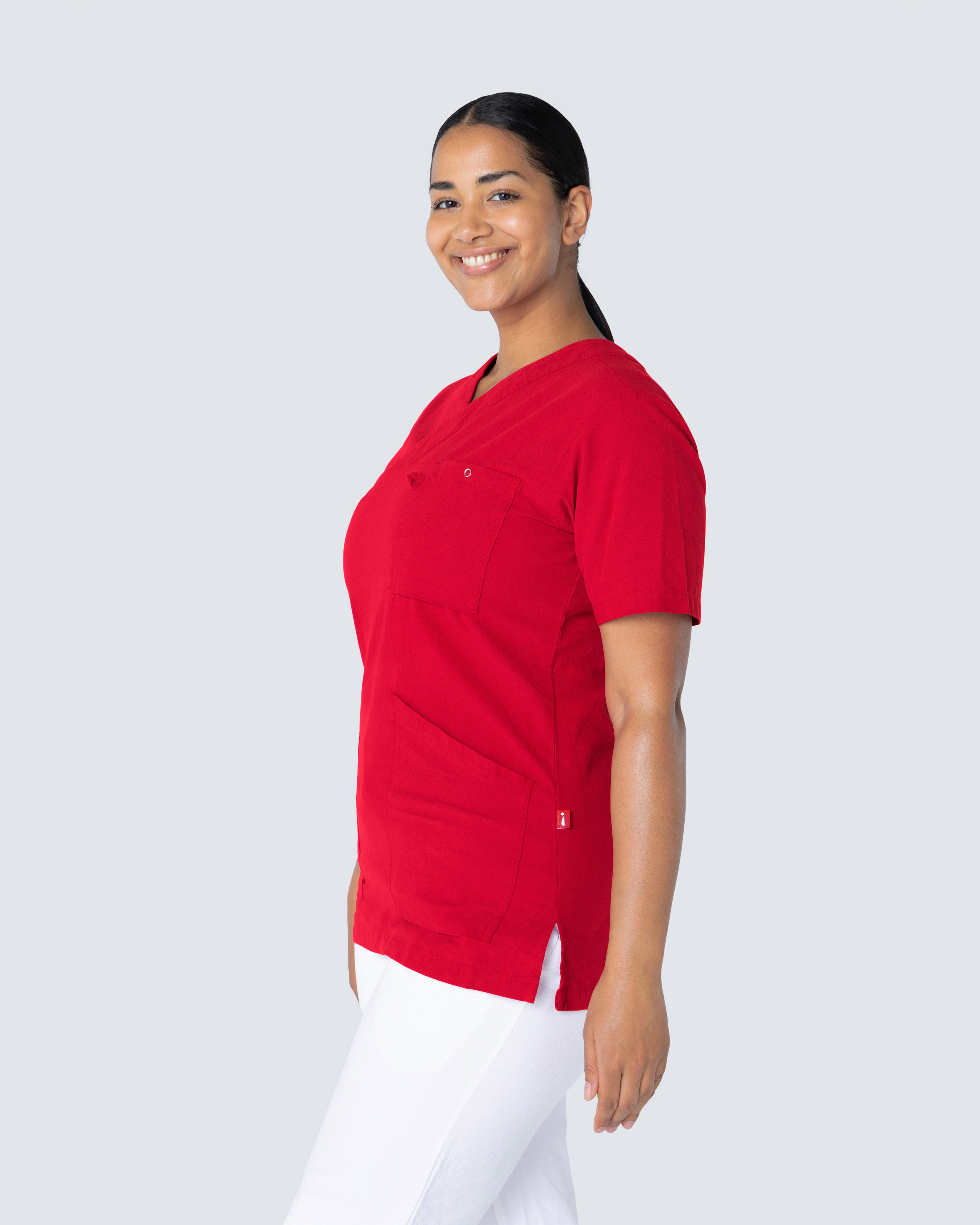 Komfortabel busseronne i krøllet bomuld i en let indsnævret model, der fremhæver dine former. South Wests busseronne i krøllet bomuld har en meget blød komfort, høj åndbarhed og et luftigt design, der giver maksimal bevægelsesfrihed. Busseronnen har en klassisk v-udskæring og figursyet pasform, der giver et meget flot omrids. Med to rummelige sidelommer, hvoraf den ene er udstyret med en nøgleholder og telefonlomme, og en brystlomme med en ringtrykknap, her har du masser af plads til en kuglepenslomme, saks, ID-kort og alle andre værktøjer, der er nødvendige til en dag i plejen.