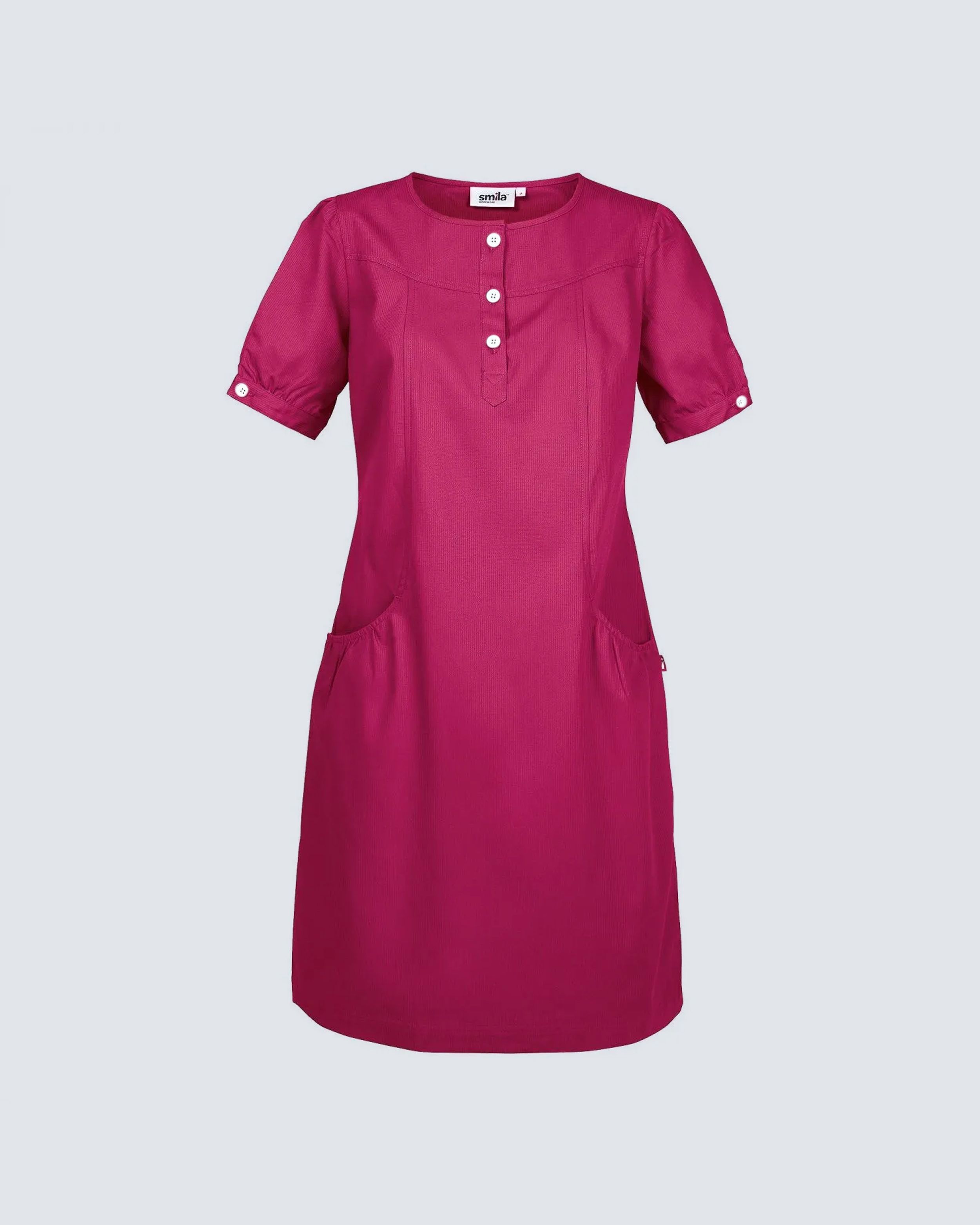 Denne kjole fra South West har alt, god pasform med snit bag og foran. Detaljer som syninger foran og bag, rynket top ved de rummelige forsænkede lommer foran. Kandtbånd med knapåbning på ærmens yderste kant. Den er lavet af bomuld og polyester og skal derfor vaskes i 85C.