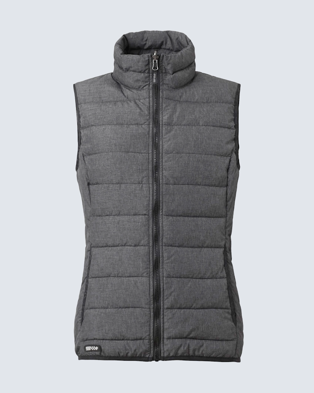 Letvægtsvest med faux dun og figurnær pasform. Dunet holdes på plads gennem vestens smalle kanaler.