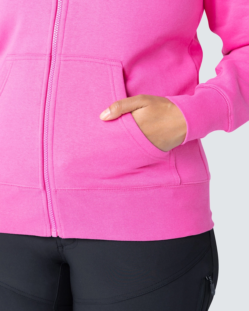 Collegejakke med en fin kvinde pasform. Dobbelt stoflag i hætten og to lommer foran. Elastisk manchet i bunden og ved manchetterne.