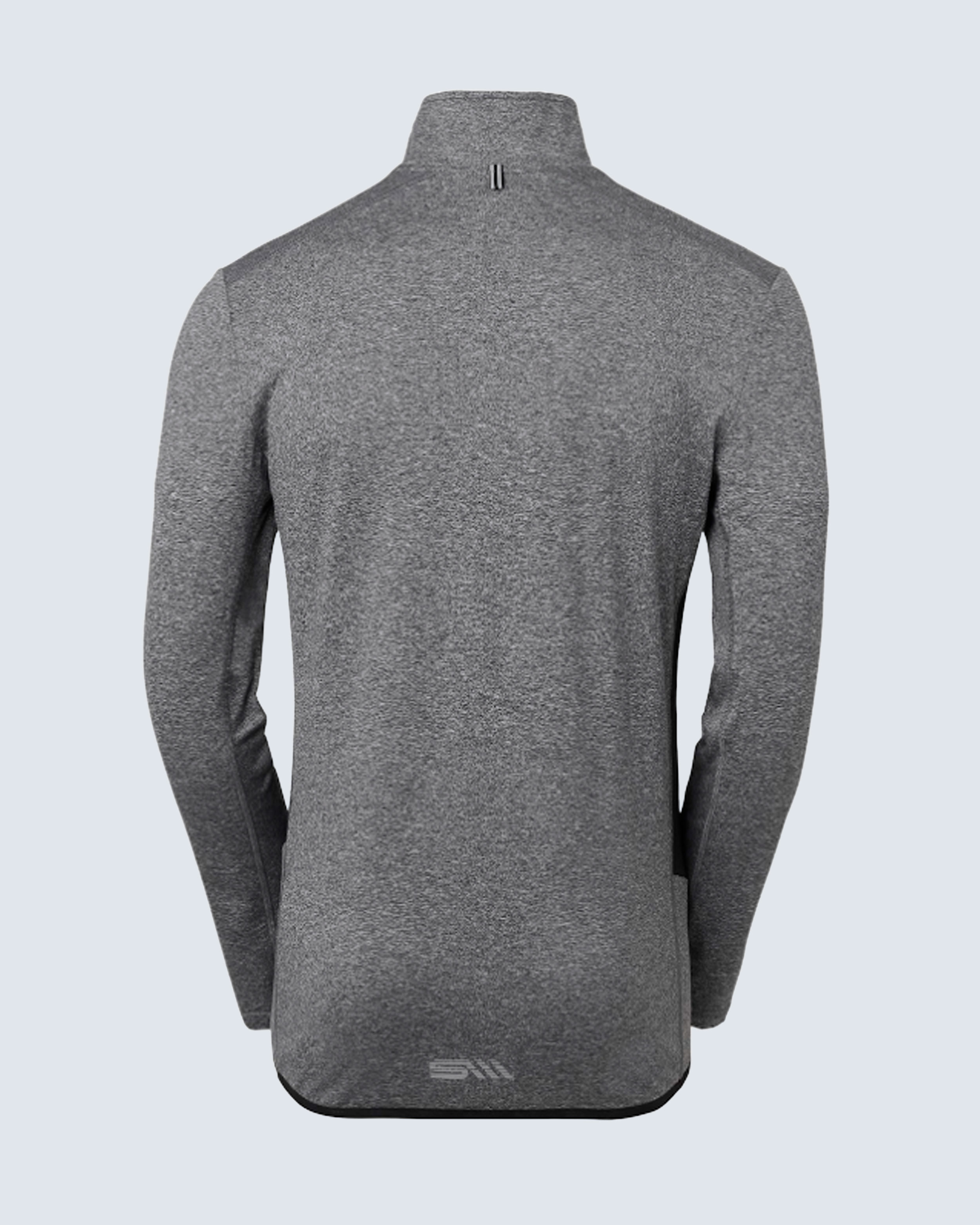 Langærmet træningstrøje med mesh-partier i siderne for ventilation. Reflekterende lynlås i halsen og reflekterende tryk i siderne foran og midt bagpå. Lomme nederst til venstre. Zip-puller med vævet reflekterende tråd.