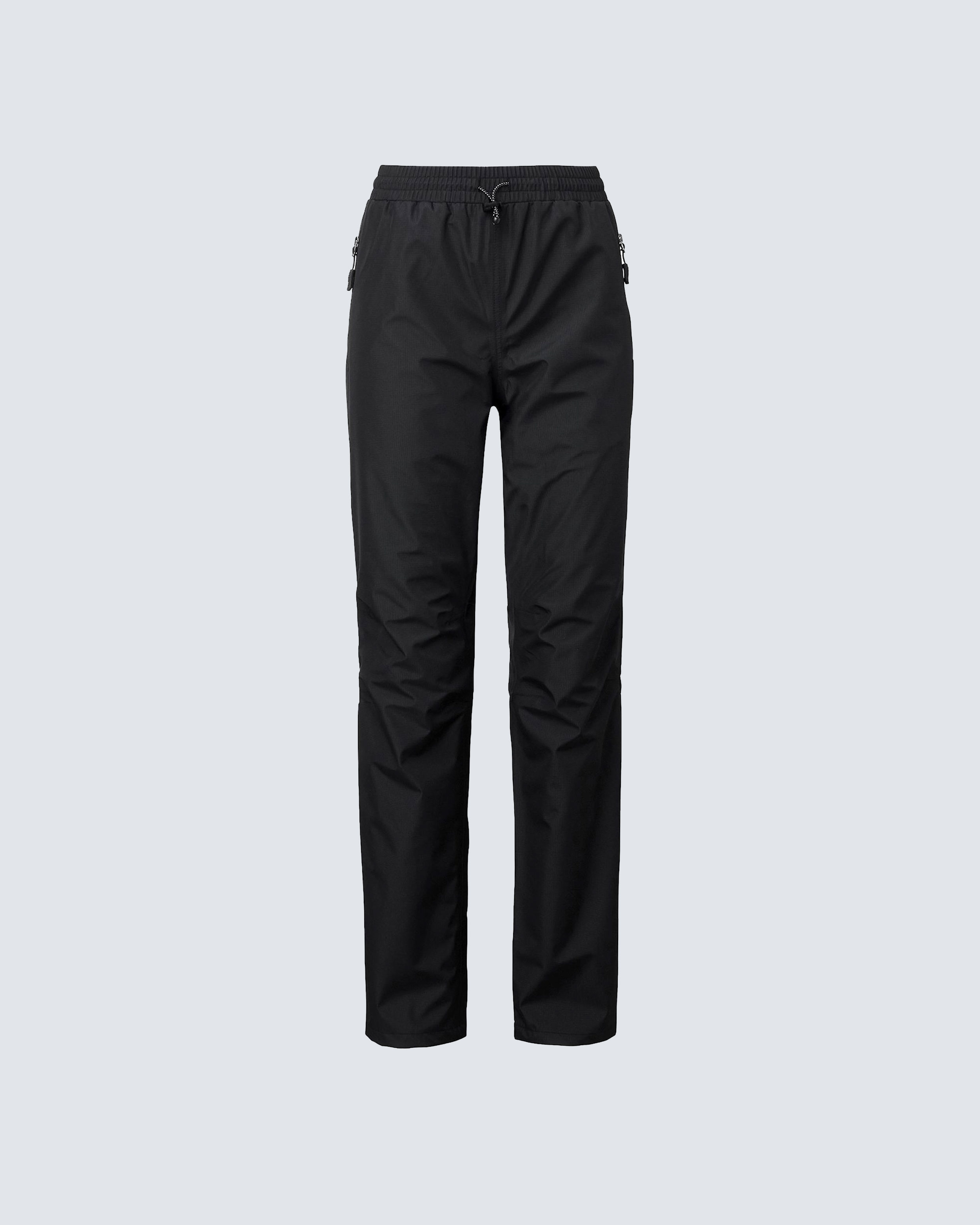 Vind- og vandtætte vindbukser i polyester ripstop-materiale. Fin kvinde pasform. Tapede sømme og elastik med snøre i taljen. Fodbredden kan justeres med velcro.