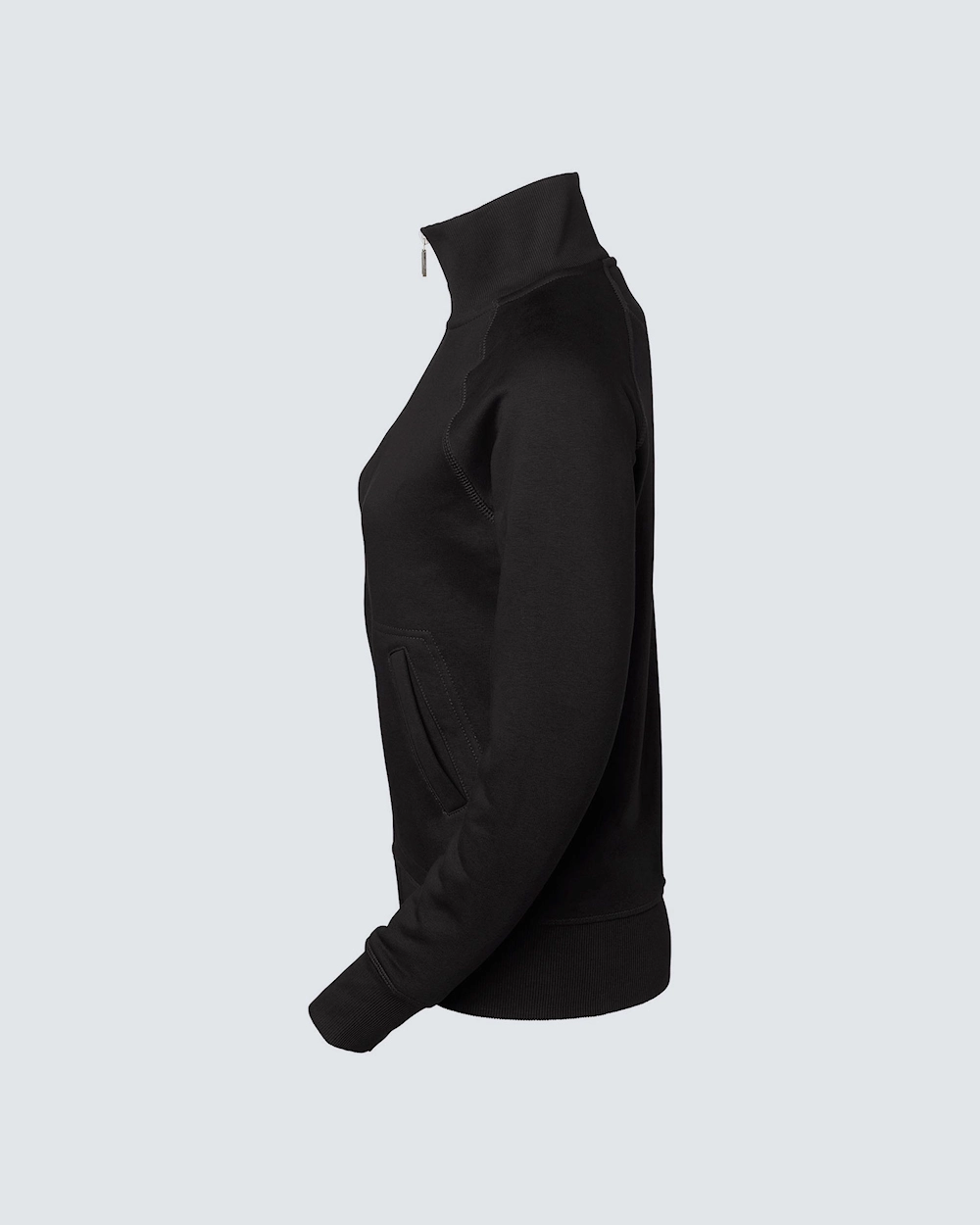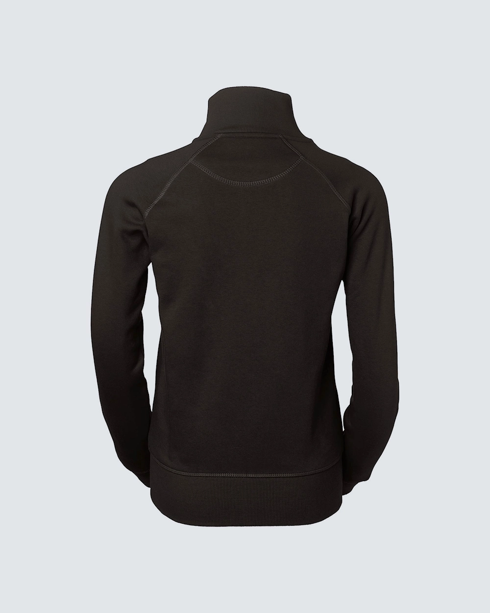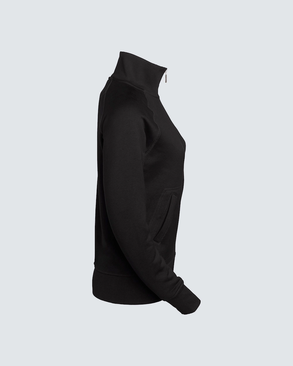 Collegejakke med fuld lynlås i en dejlig kvinde pasform. Børstet inderside og raglanærme. Elastisk manchet i krave, manchetter og forneden. Dekorativ strikning omkring forlommer og manchetter.