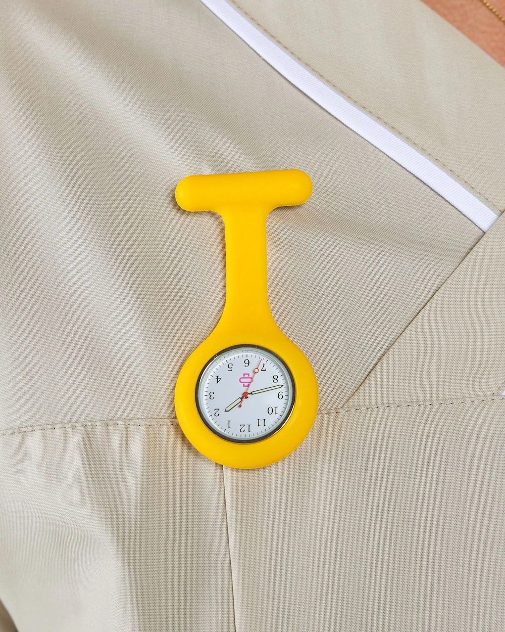Lys op dit arbejdstøj med vores sygeplejerskeur Gul. Dette ur giver en frisk og solrig følelse, perfekt til at gøre din arbejdsdag lidt lysere og mere farverig.
