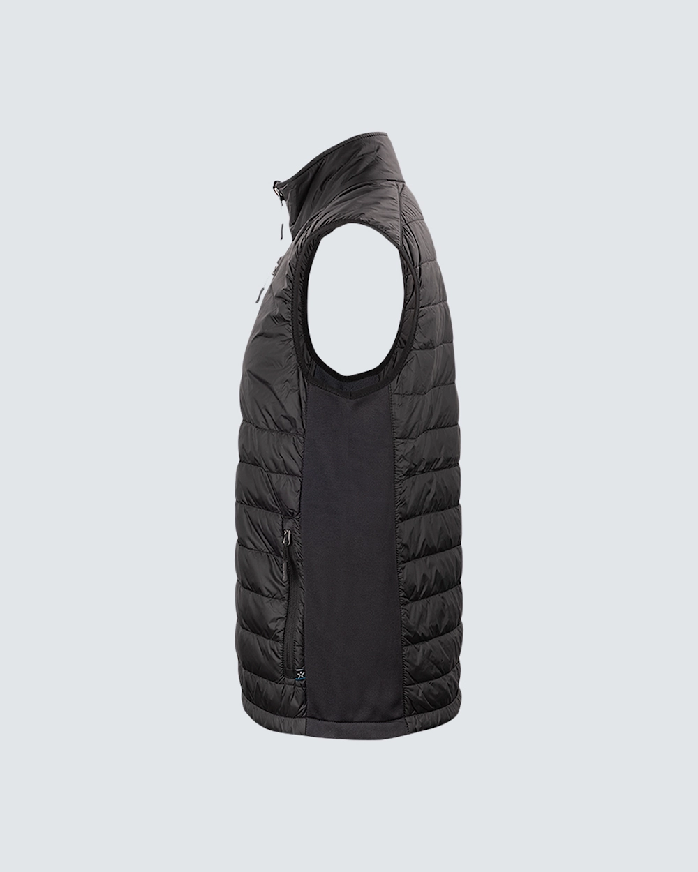 Denne lette vest er et perfekt valg til dem, der ønsker en fleksibel lag-2-beklædning. Den quiltede polstring giver ekstra varme uden at tynge dig ned. Tre lynlåslommer giver praktisk og sikker opbevaring. Vesten opfylder strenge miljøkriterier, hvilket gør den til et miljøvenligt valg. Et behageligt valg, der passer til alle årstider.