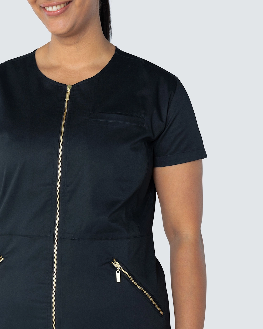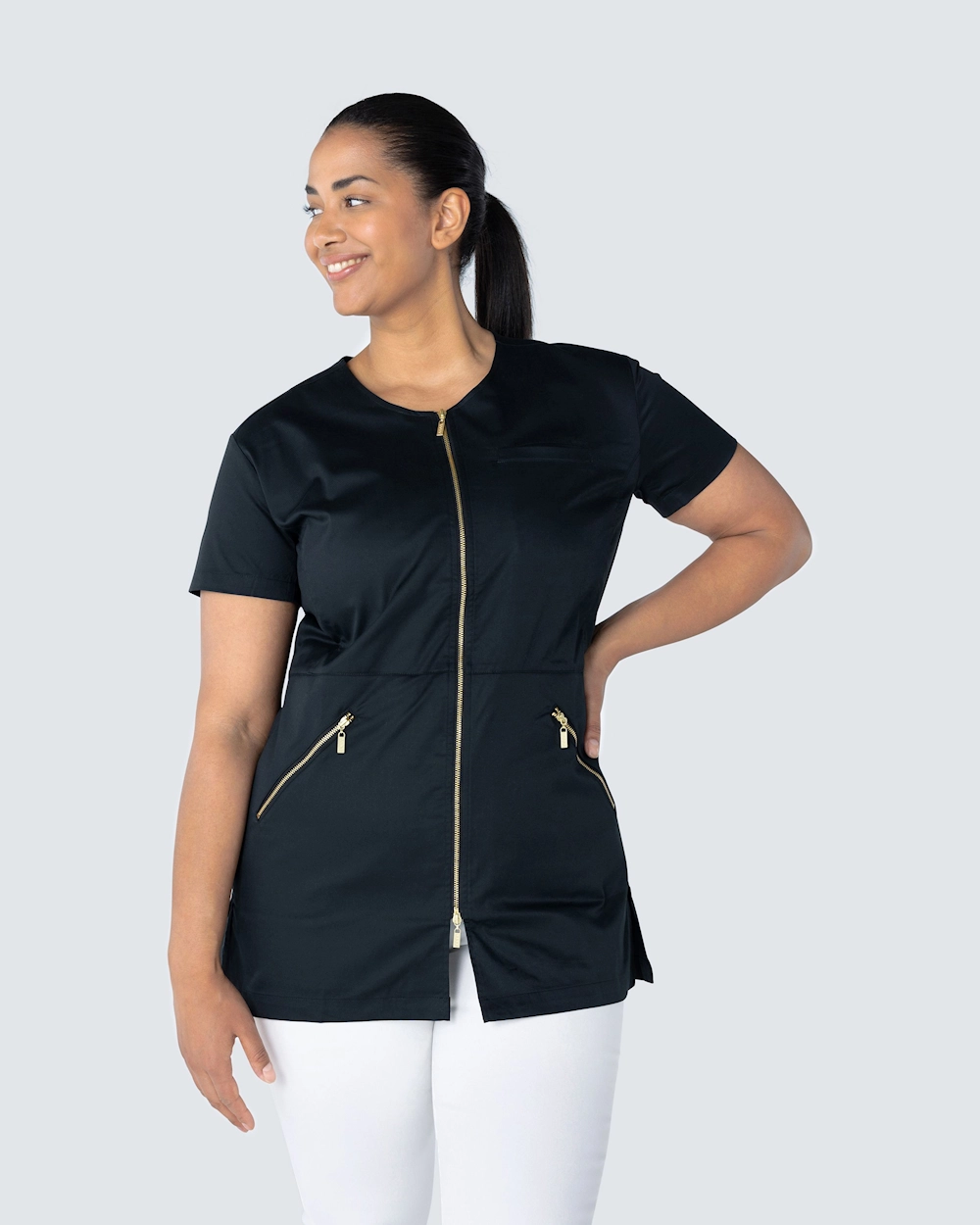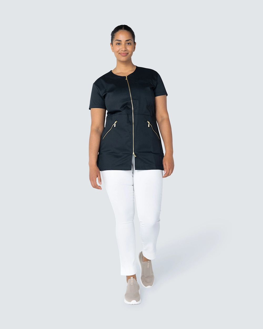 Denne tunika fra Wear at Work er lavet af et slidstærkt og behageligt stretchstof og er en slå om-model med bindebånd i taljen.